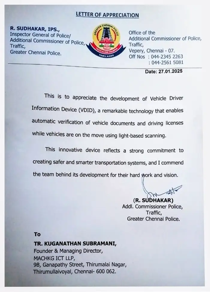 VDID (to be pronounced as “We Did”) – Vehicle and Driver Information Device. It is an electronic device that needs to be installed in the vehicle that conveys vehicle documents such as Registration, Insurance and pollution certificates and present driver’s driving license through light signal to the traffic police officers. It is integrated with a VDID software application. VDID is not only a product it is a revolutionary technology that requires for our smart/safe city ecosystem.